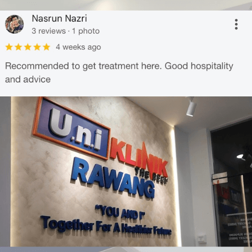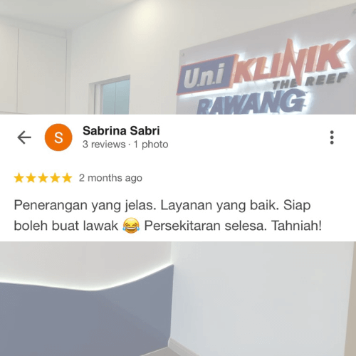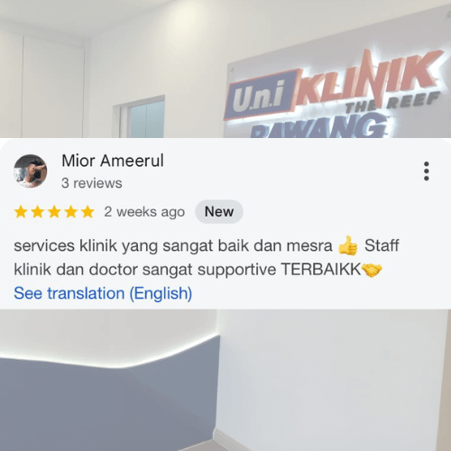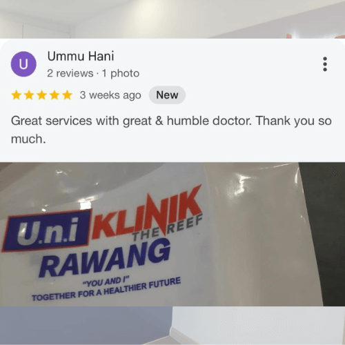 Mencari klinik yang boleh dipercayai untuk seluruh keluarga? Di Uni Klinik Rawang, kami menyediakan rawatan kesihatan menyeluruh dengan pendekatan profesional dan mesra pesakit.