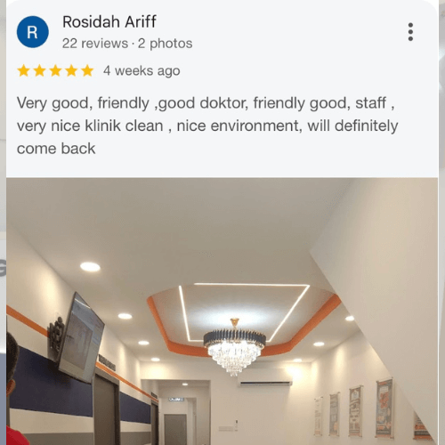 The clinic looks new, very clean and peaceful. The doctor here is very nice, answers all questions that we have and not rushing in the consultation room. Recommended
